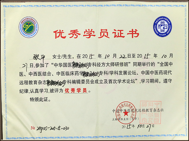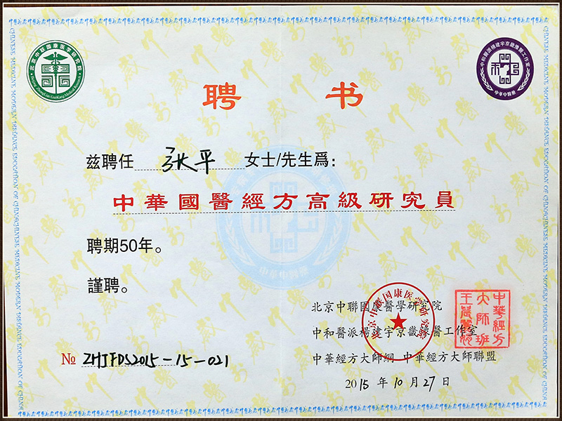 中华国医经方高级研究员证书